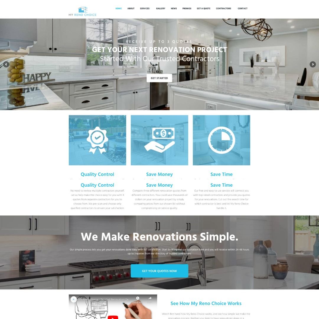 The website features a clean, modern design that aligns with the innovative and stylish approach of MyRenoChoice’s renovation services. Visitors can easily browse through a comprehensive gallery showcasing a range of renovation projects, from kitchen remodels to full home transformations. This visual portfolio not only highlights the company’s craftsmanship but also serves as inspiration for potential clients. Additionally, the website includes detailed service descriptions, client testimonials, and a user-friendly contact form, making it simple for visitors to inquire about services and start their renovation journey.